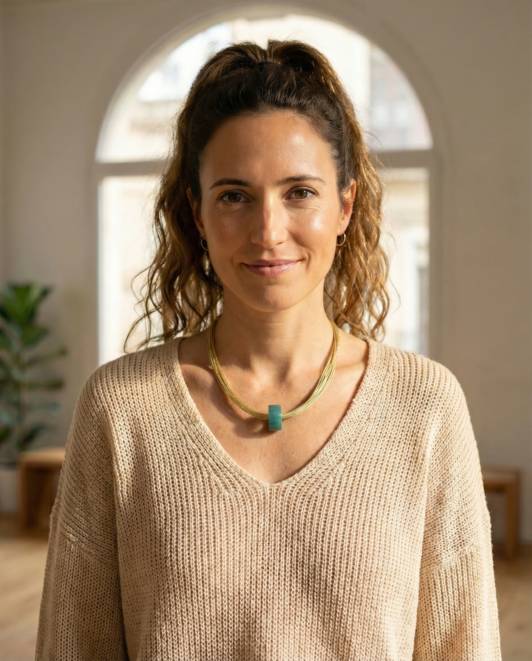 Pieza única que combina calidez dorada con la vibración del jade, ideal para pieles cálidas y estilismos neutros. Resaltan su textura orgánica y brillo sutil. Perfecto como regalo o capricho personal.