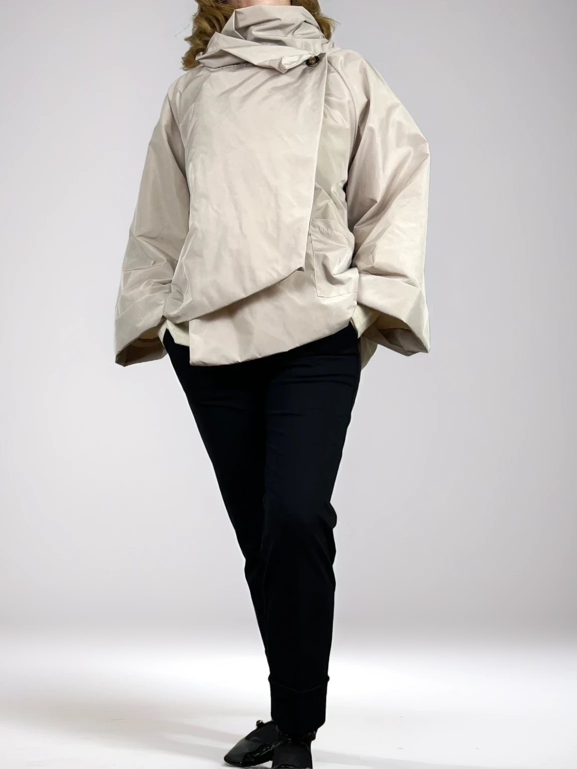 - Chaqueta exterior estilo oversize, ligera y súper estilosa. Va forrada con un liviano relleno que permite llevarla en otoño y en días de invierno suaves. Una pieza que marca la diferencia en cualquier look. 100% Poliéster. Talla única (de la 38 a 46). La chaqueta azul y la beige tienen distinto patrón, la azul tiene capucha y la beige cuello chal.