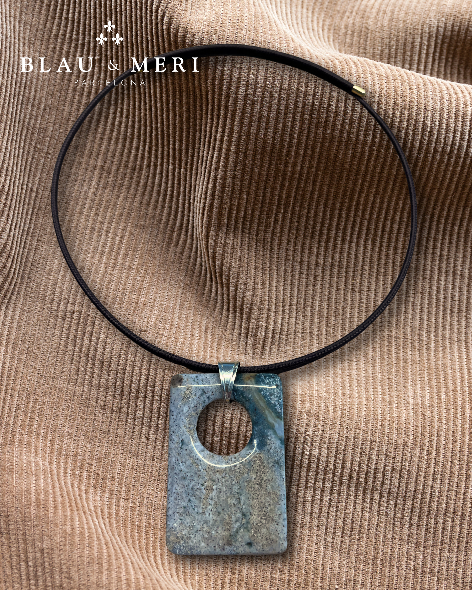 Gargantilla magnética y piedra de ágata de la India. Puedes adaptarla fácilmente a la medida deseada en cada momento. El cordón magnético está disponible en colores marrón, negro, plateado y dorado.